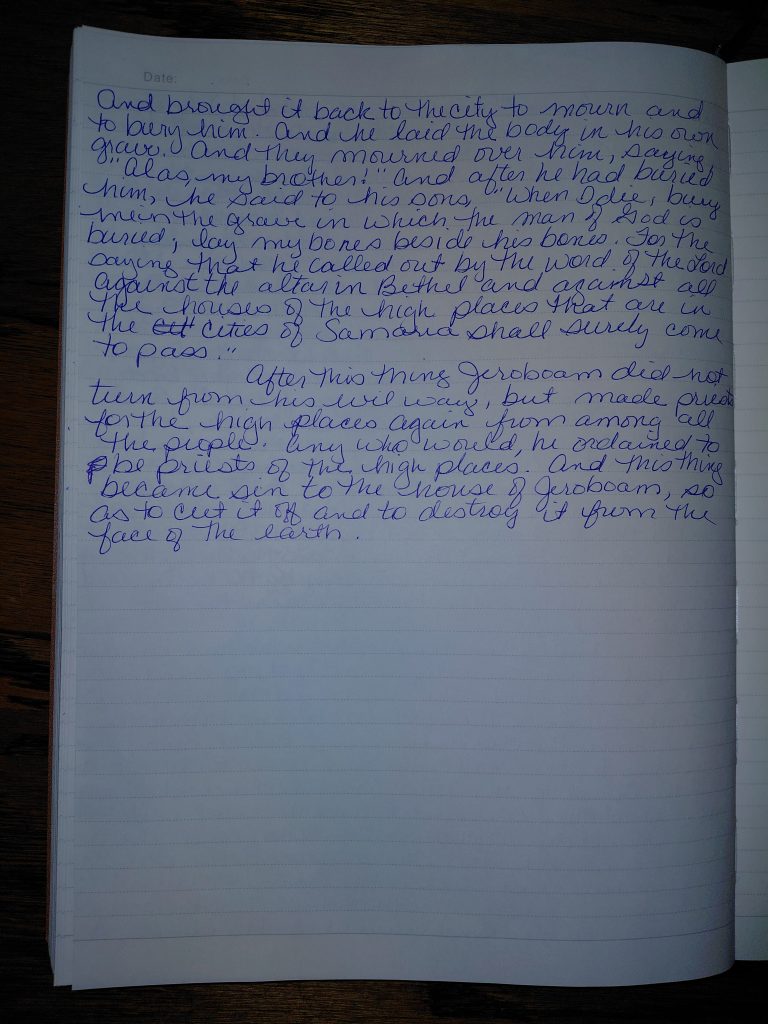 This prophet had direct instruction from the Lord, but he believed another person. A person who was suppose to be a man who spoke for the Lord. I need to be careful before I listen to another person. Even if they are in a place that I would assume they would know what God says. I can only believe the words that I read from the Bible, the true words of God.