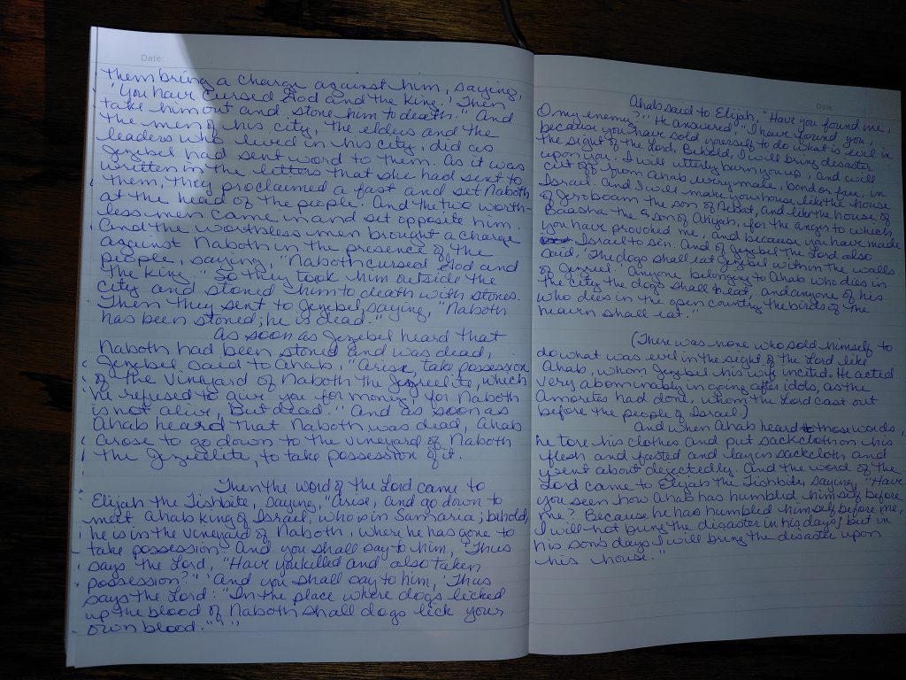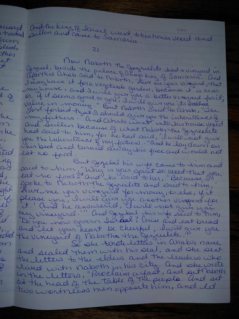 Writing 1 Kings 21