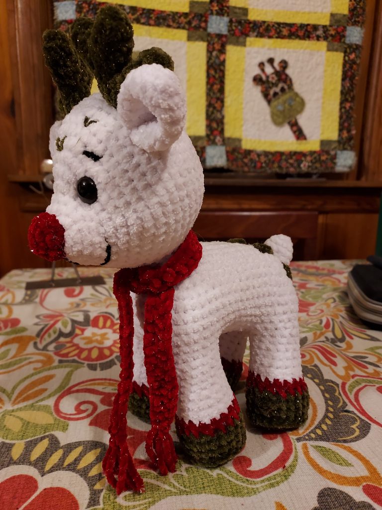 I am happy that I am finally getting caught up on some crocheting. Sometimes I fall into a rut after going nonstop. Here is a sweet little reindeer made for a sweet lady. The pattern is from Alena Titova. The pattern was great and easy to follow. This is the second one I have made. I am sure I will make more in the future.
