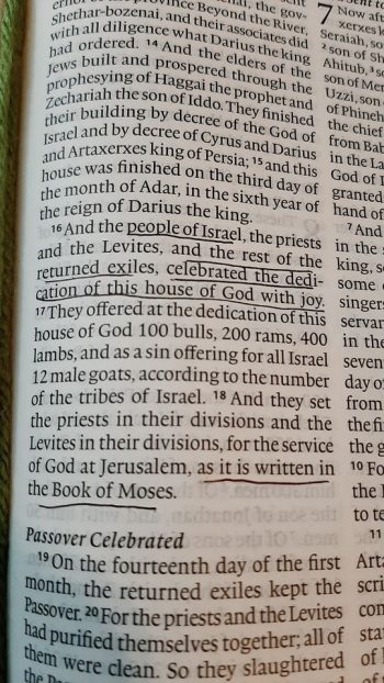 Good morning, reading Ezra only 2 chapters this morning, 6 and 7. I have an appointment this morning and I didn’t regulate my time well enough. The people finished the temple and dedicated the house of God with joy. I imagine they all stood back at some point and smiled as they took it all in. The destruction, the sin, the captivity, the release, and now the beginning of being God’s people again. Doing this according to His words written in the book of Moses.