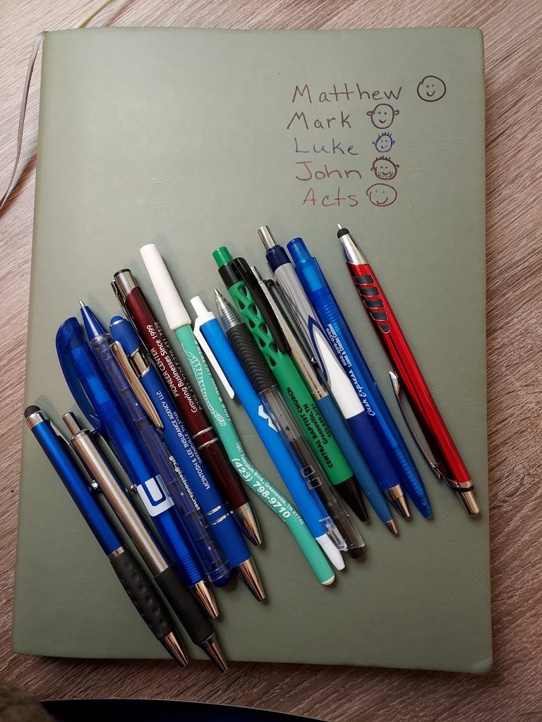 I am excited to finish the 5th book in the New Testament. These 5 books filled my big notebook with only 3 pages left. These are A4 notebooks with 320 pages in them, they are a bit bigger than your typical spiral notebooks.