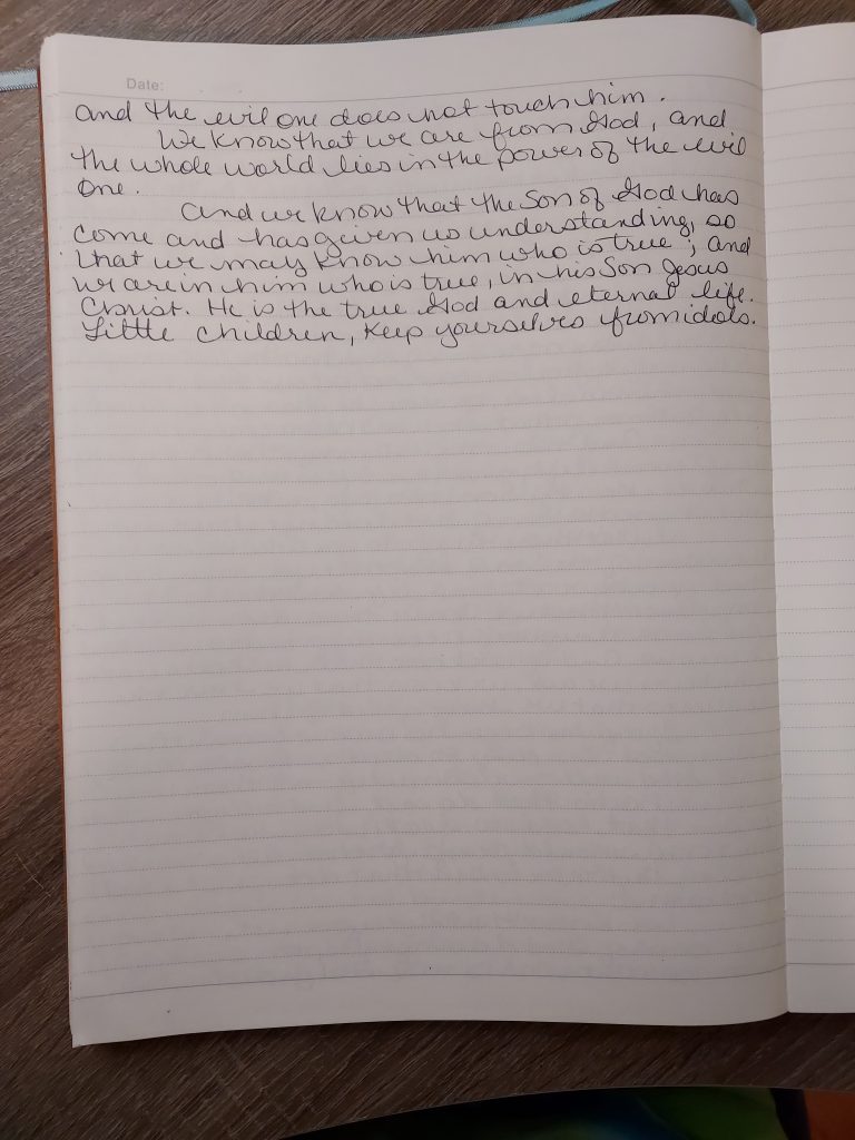 Good morning. The last chapter of the book of 1 John. As I reach the end I can’t help but look back and notice that this book keeps me thinking about God the Father, Jesus the Son, and the Holy Spirit. Who are they? Are they important to you? Are they important to me? This little book tells me why they are important to all of us. They bring us eternal life. A life that we can know that we have: