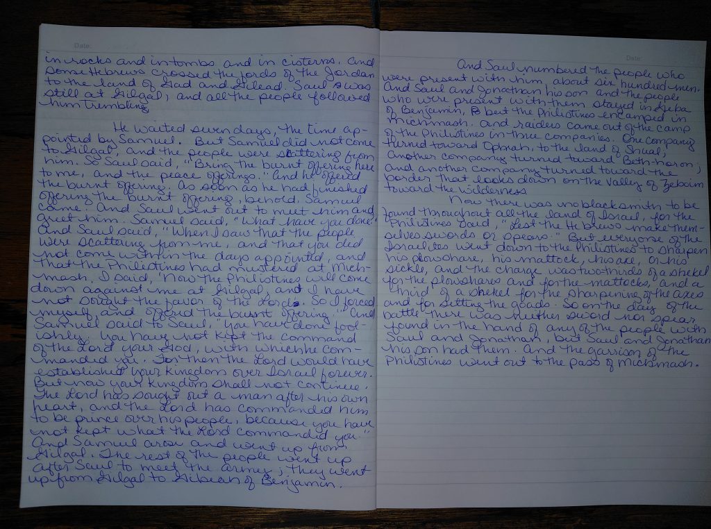 Does God want me to listen to His commands? Well, he expected Saul to listen to them. But because Saul decided to do his own thing there were consequences. Just as there are consequences to my actions. Thankfully, I have Jesus, who came here to wash away my sins. But I still need to listen, and do what I can to follow God’s commands. What are His commands??? I guess we have to read His book to find that out… 🙂