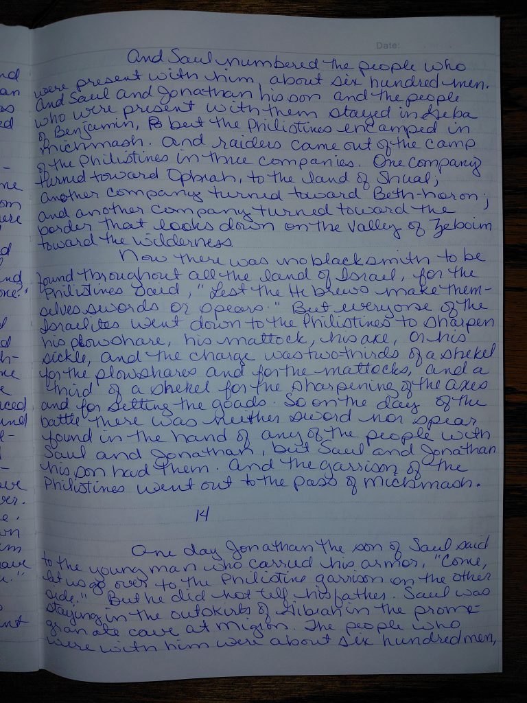 “Jonathan said to the young man who carried his armor, “Come, let us go over to the garrison of these uncircumcised. It may be that the Lord will work for us, for nothing can hinder the Lord from saving by many or by few.”
