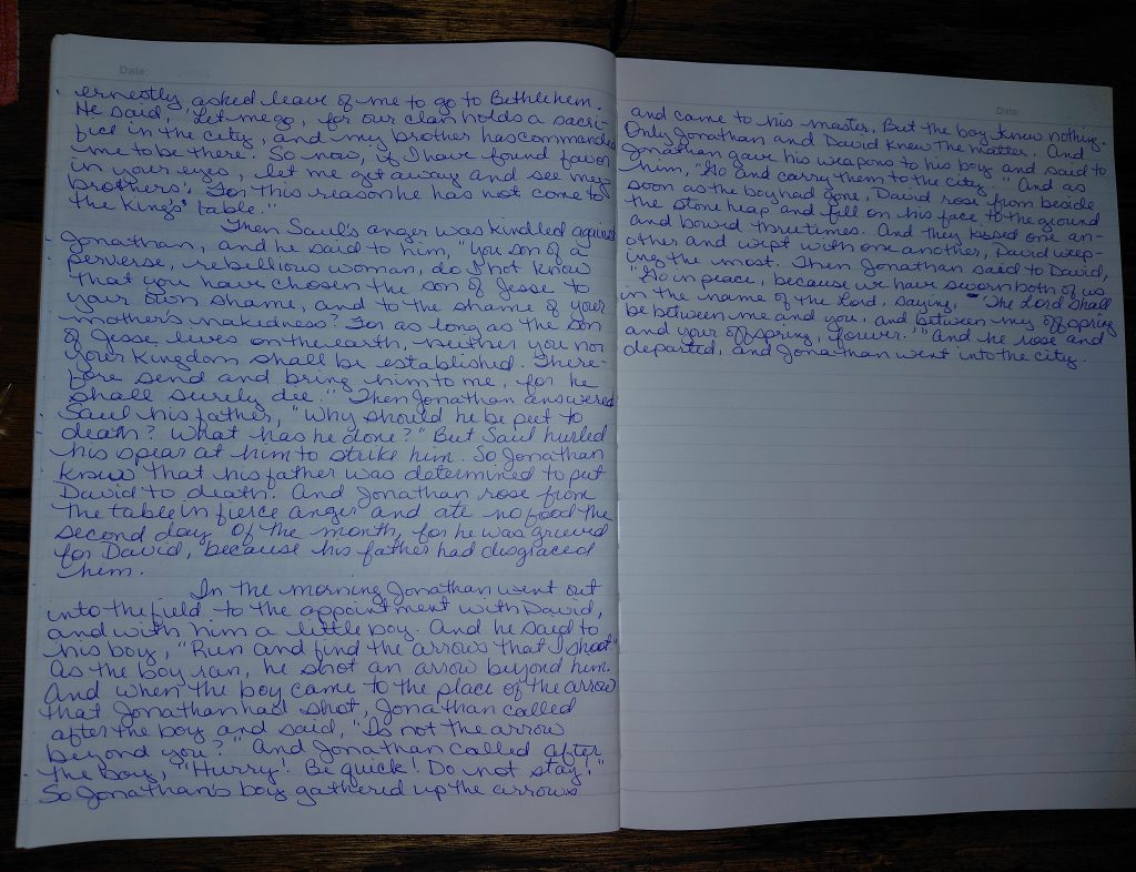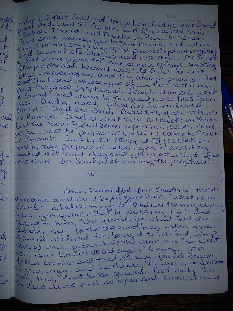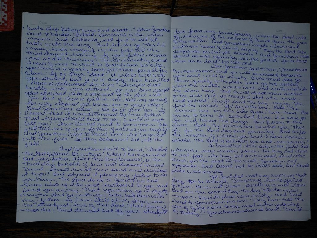 Writing 1 Samuel 20