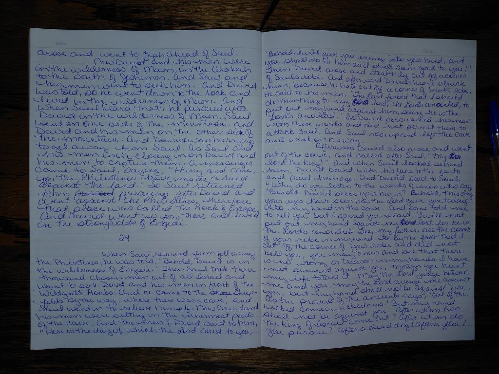 “Then David arose and stealthily cut off a corner of Saul’s robe. And afterward David’s heart struck him, because he had cut off a corner of Saul’s robe. He said to his men, “The Lord forbid that I should do this thing to my lord, the Lord’s anointed, to put out my hand against him, seeing he is the Lord’s anointed.”
