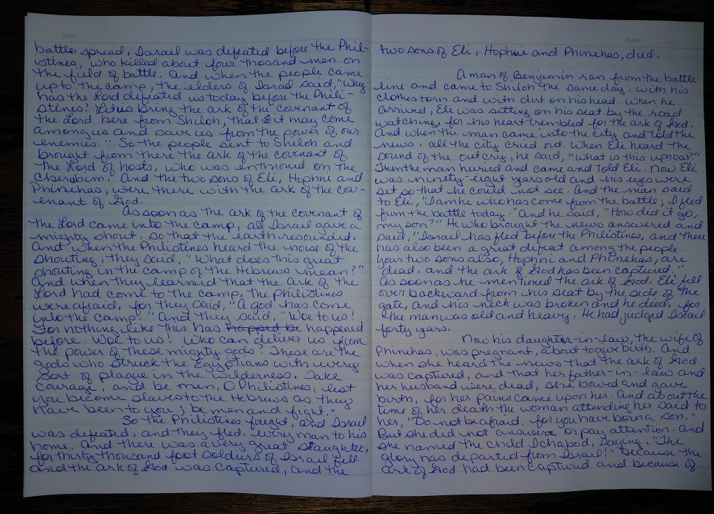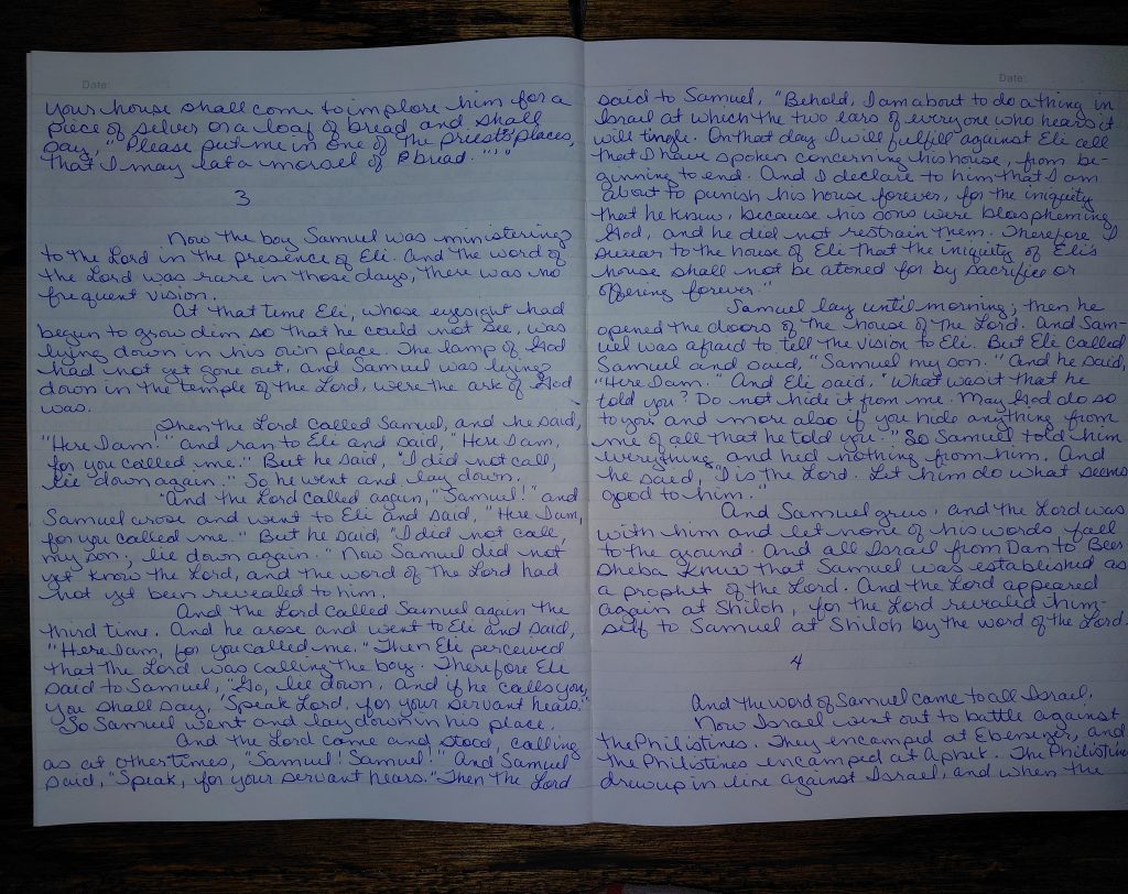 Writing 1 Samuel 3 and 4