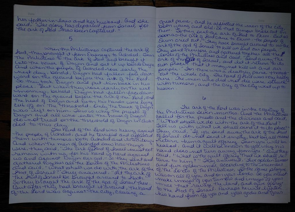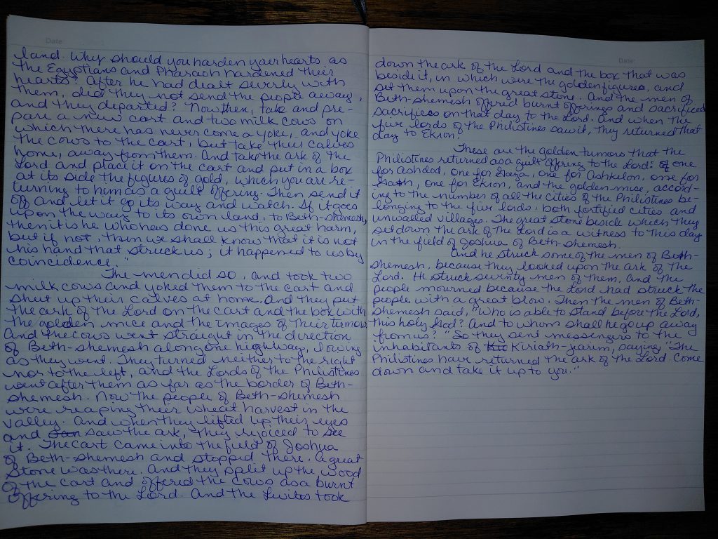 Can you imagine how the lords of the Philistines felt as they watched these 2 cows, that have never been yoked and had their babies taken from them, walk out of town to the Israelites? So many times the Lord showed the gentiles his power. This was one of those times. Amazing!!