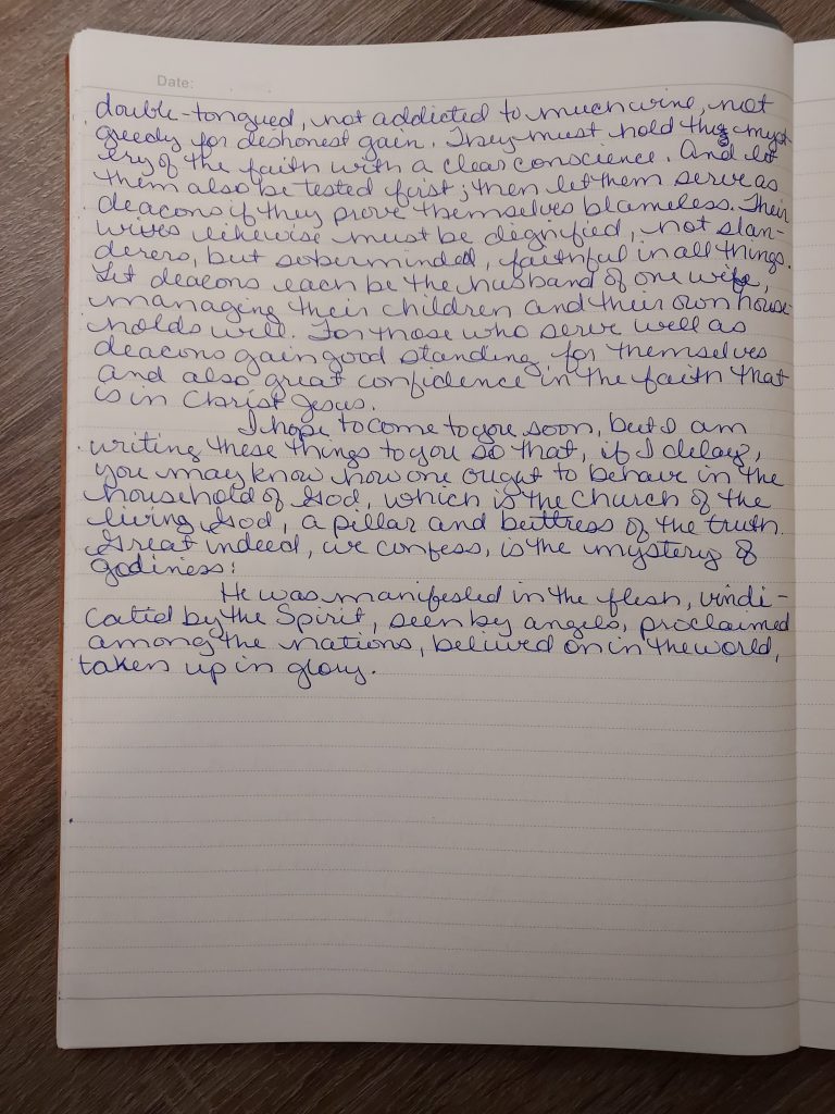 “I am writing these things to you so that , if I delay, you may know how one ought to behave in the household of God, which is the church of the living God”
