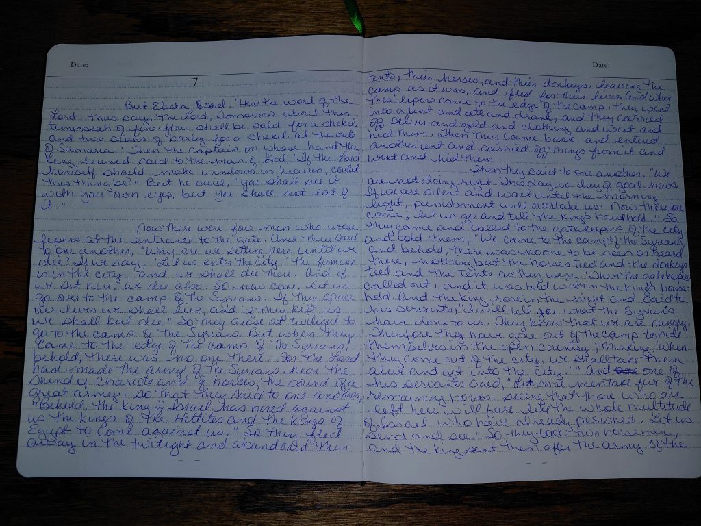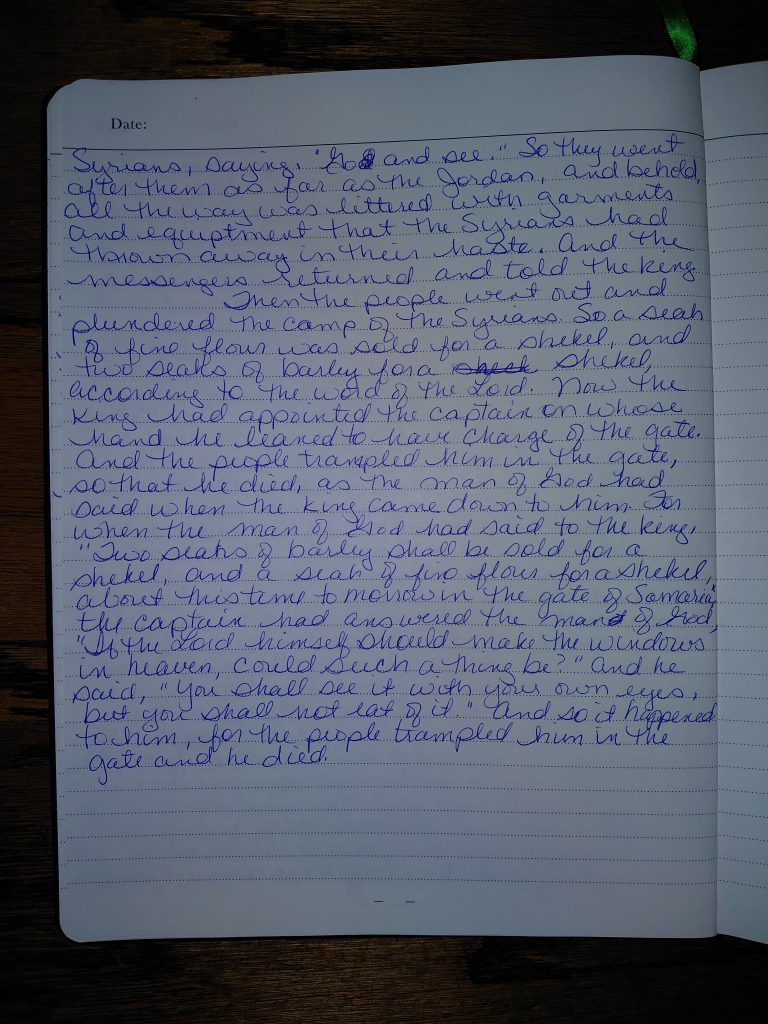 Writing 2 Kings 6 and 7