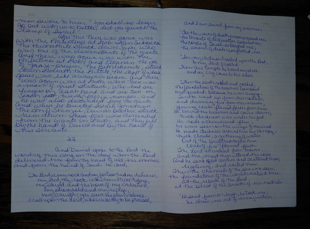 Writing 2 Samuel 22