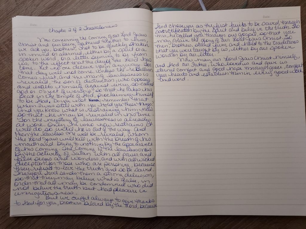 “Now may our Lord Jesus Christ himself, and God our Father, who loved us and gave us eternal comfort and good hope through grace, comfort your hearts and establish them in every good work and word.”