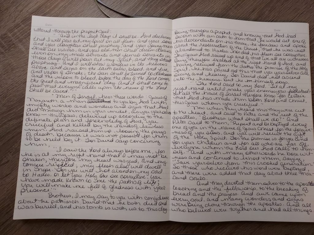 Onto the real reason I am here. Acts 2. The Holy Spirit is here in full force. So many were there to see and hear, and so many finally listened and believed. I refer back to verse 37: