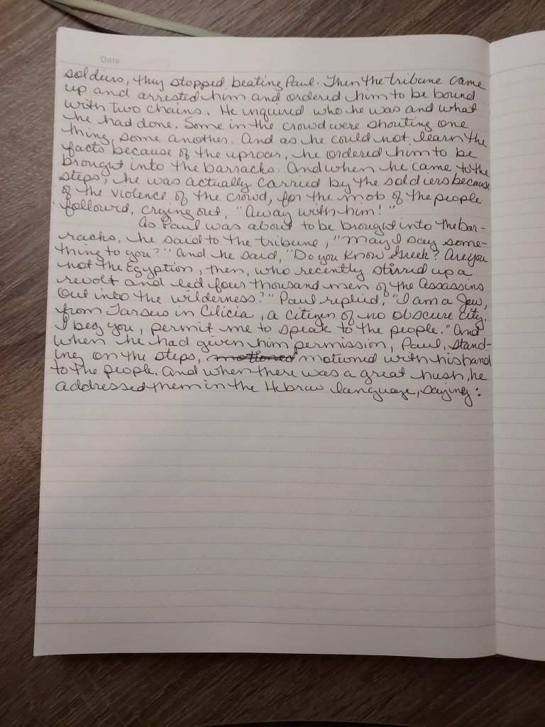 Today my body is fighting me, I have fibromyalgia. My pain is in my hands, shoulders, and back this morning. But I pull through. I mentioned the other morning that my vision was blurred. It too is part of my illness. But these things are so little compared to what Paul had to go through, yet he was content and always continued on. He went on to Jerusalem, was beaten and arrested. In the next chapter we will see what he chooses to do with his situation. Such strength.