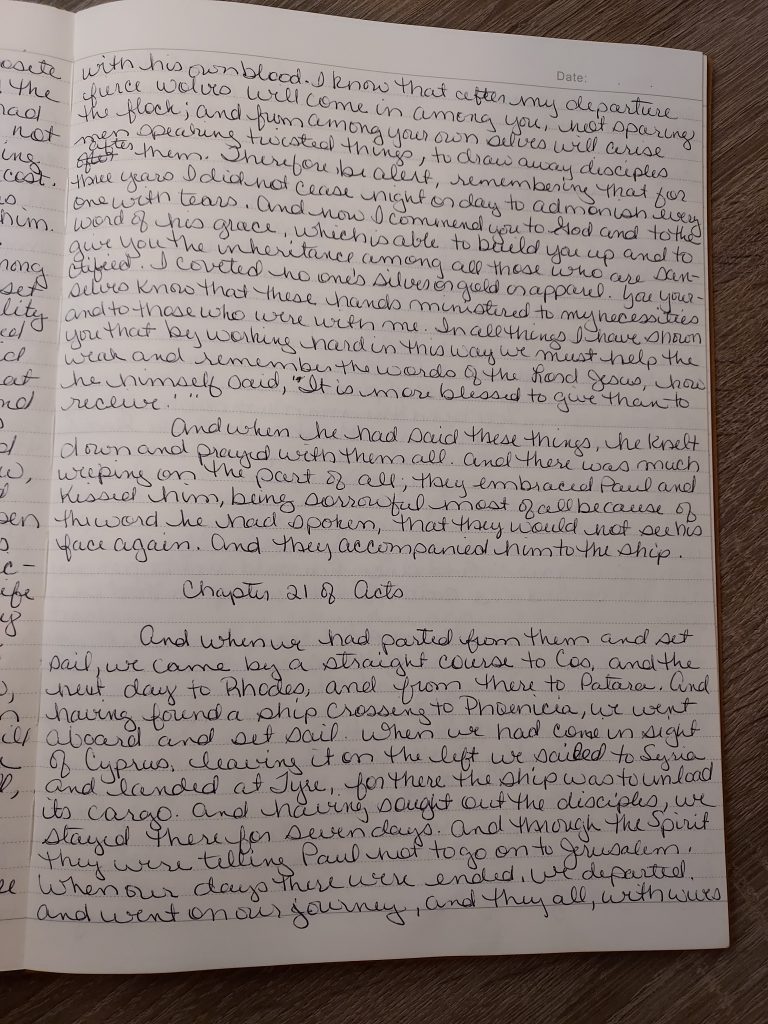 Good morning, as I write this chapter and see what Paul has to go through, it gives me strength. Here he is getting ready to go through pain and suffering and he chooses to walk right into it, with a willing heart, in the name of the Lord Jesus.