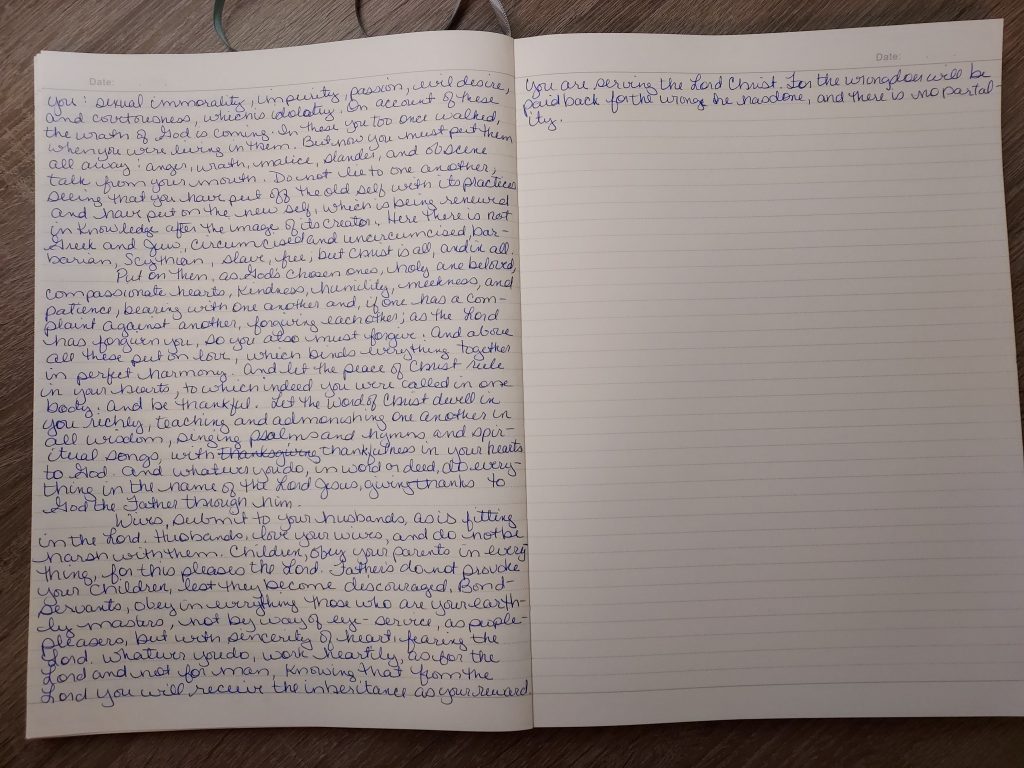 “Put on then, as God’s chosen ones, holy and beloved, compassionate hearts, kindness, humility, meekness, and patience, bearing with one another and, if one has a complaint against another, forgiving each other; as the Lord has forgiven you, so you also must forgive. And above all these put on love, which binds everything together in perfect harmony. And let the peace of Christ rule in your hearts, to which indeed you were called in one body. And be thankful.”
