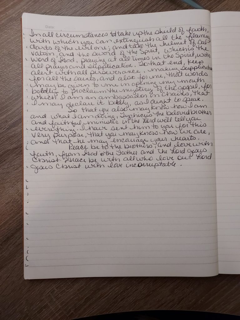 Just as Paul loved the Corinthians and the Galatians, Paul also loved the Ephesians. Did you notice the last sentence he wrote? He was wishing me well too. Such a wonderful feeling, I feel like Paul was looking forward to future Christians. These letters have influenced so many generations to follow Jesus. I am part of that. It makes me feel so big and so small at the same time.