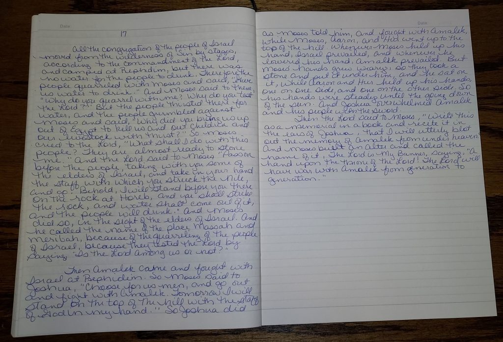 So Joshua did as Moses told him, and fought with Amalek, while Moses, Aaron, and Hur went up to the top of the hill. Whenever Mosses held up his hand, Israel prevailed, and whenever he lowered his hand, Amalek prevailed. But Moses’ hand grew weary, so they took a stone and put it under him, and he sat on it, while Aaron and Hur held up his hands, one on one side, and the other on the other side. So his hands were steady until the going down of the sun. And Joshua overwhelmed Amalek and his people with the sword.”