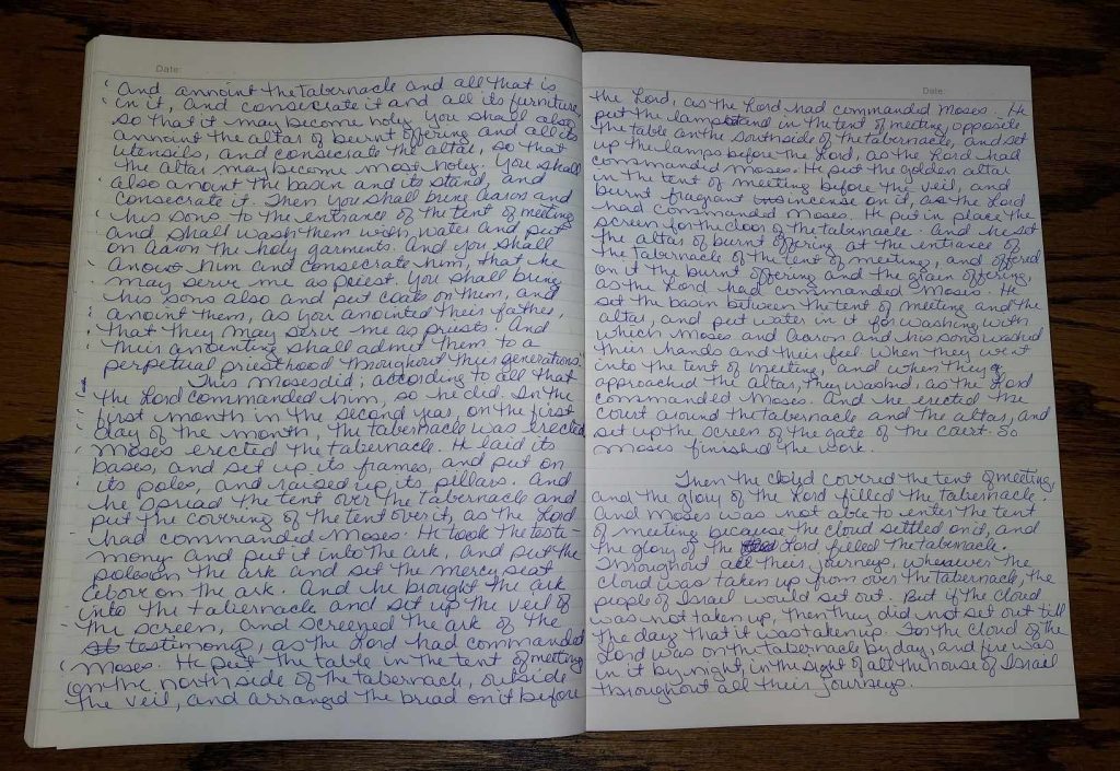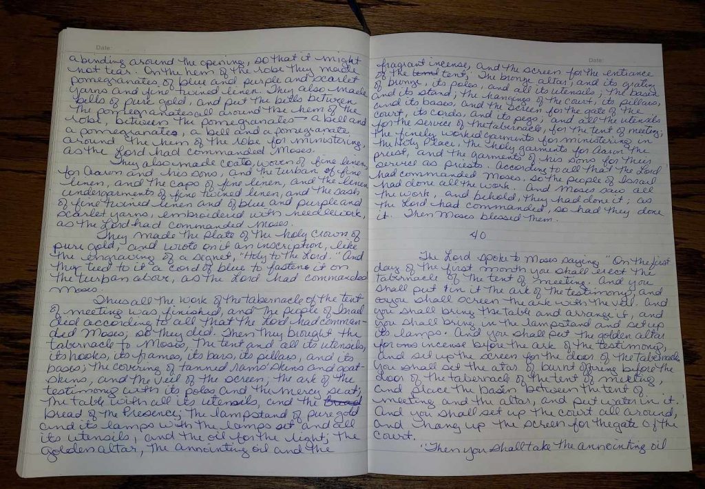 These 2 chapters show us that the people and Moses did ‘as the Lord had commanded Moses’. So many details, that may sound so repetitive, but I think the Lord wanted it to be clear what was done and that everything was followed through. Not just by assumption, but carefully followed through.