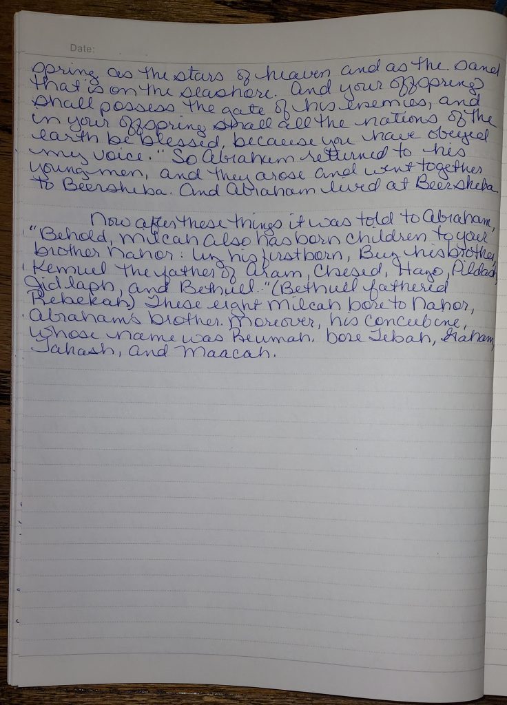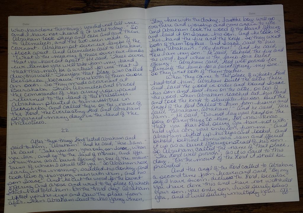 This is a hard chapter to read. Especially for those of us who have children. I cannot imagine being put in this situation of sacrificing my child. I am thankful that I was not asked to do this. As I read these words though, I can’t have but think of Jesus. God did not withhold His Son. His Son was sacrificed for us, for our sins, so that we could be joined with Him in heaven one day.