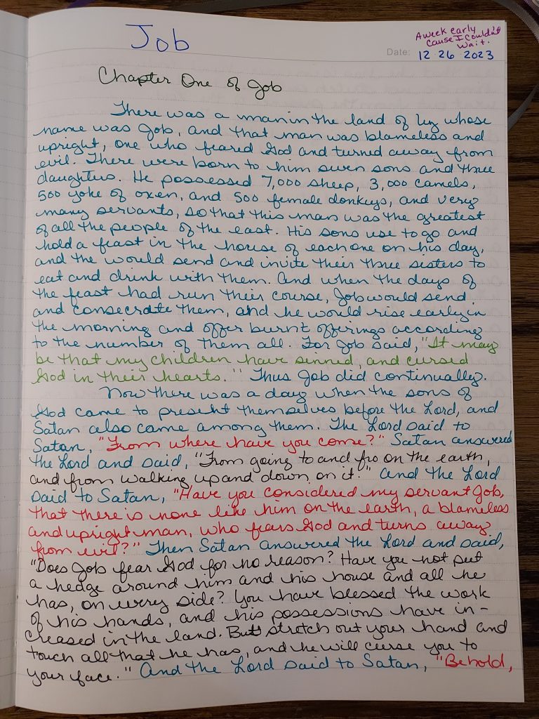 Good morning. I am so thankful to be starting a new section of the Bible. The books of poetry. And my first book is Job. Job has never been a favorite of mine. Let me see if I will see it differently after I write it.