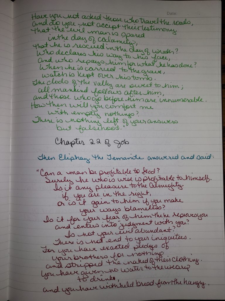 O’ Eliphaz…. The title my bible gives this section is ‘Eliphaz Speaks: Job’s Wickedness is Great’. Eliphaz speaks what he believes to be true.