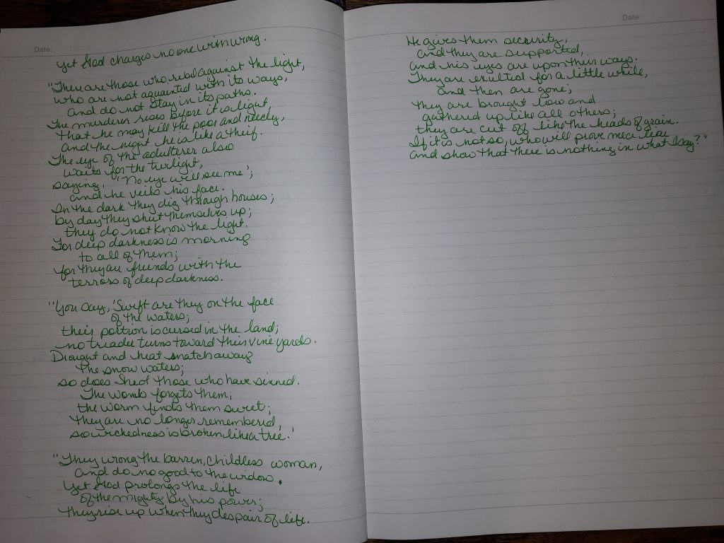 Good morning. Yes, you read that right, chapter 23 and 24. I decided to make a change for now. To be honest, the going back between Job and his friends is taking a bit long for me to go through. So, I decided to focus more on sections instead of chapters. This will also be dependent on how much time I have. Now back to the important stuff…..