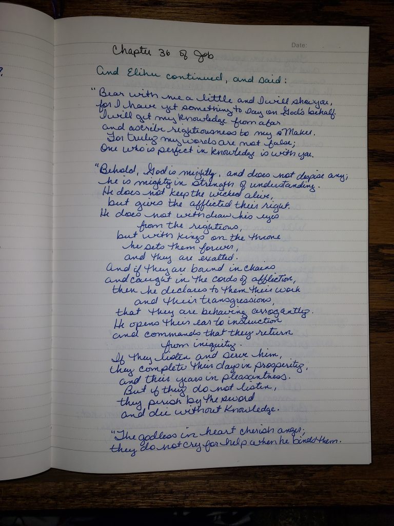 Good morning. To begin, I have to admit to you all that I am thankful that I have finished the first 37 chapters of Job. I have always struggled reading this book and writing it is no different. The going back and forth of these men seems to go on way too long for me. So, if you are reading along with me and have hung in there, please take the time to pat yourself on the back.