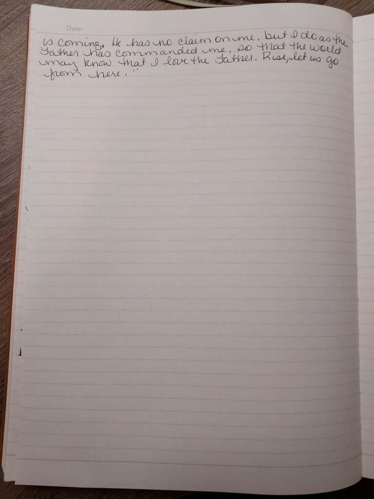 Good morning, today’s chapter is so powerful. As I write each chapter in John, it reminds me why I like this book so much. In this chapter alone, I have more faith and reassurance for following the Lord.