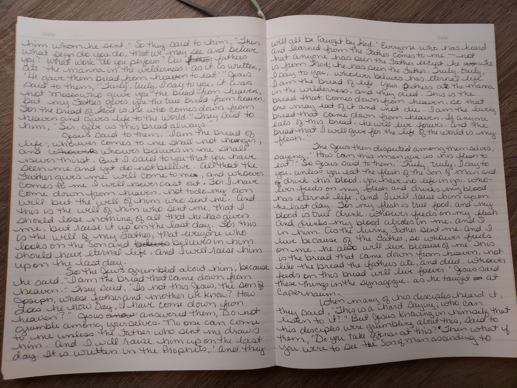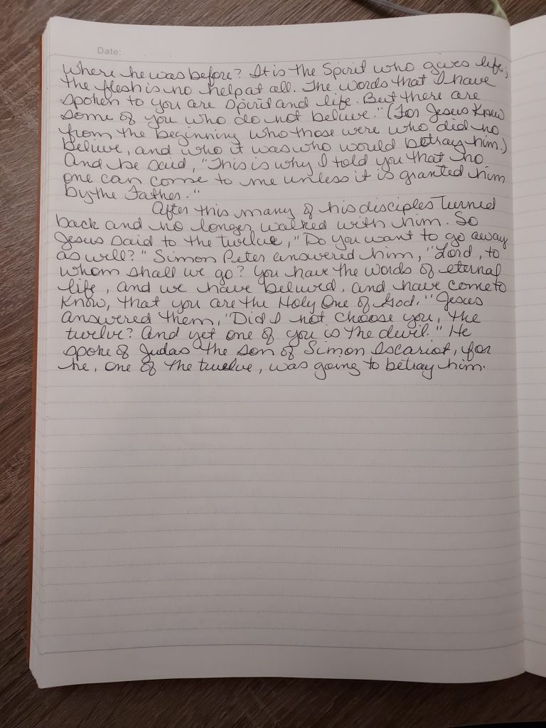 Onto the chapter. In chapter 6 there are a lot of hard to understand verses, even the disciples had trouble understanding. A lot of His followers left and when home after his teaching. I am thankful that in verse 63 He explains that He was talking about Spirit and not flesh. But even after that they did not understand.
