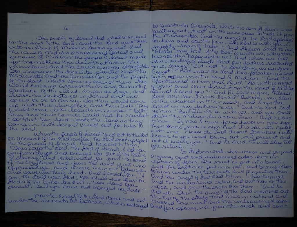 Very often as I am writing the Bible, little things make me pay attention. Lately, the phrase ‘angel of the Lord’, has caught my attention. I am getting very curious about who this ‘angel of the Lord’ is. I have my ideas, but I want to know if my ideas are correct. The only way to find out is to read through all of the times that this particular phrase is used and see if it will tell me. My answer isn’t good enough, other people’s answers aren’t good enough, only the Bible answer is good enough. This will be a study for the future.