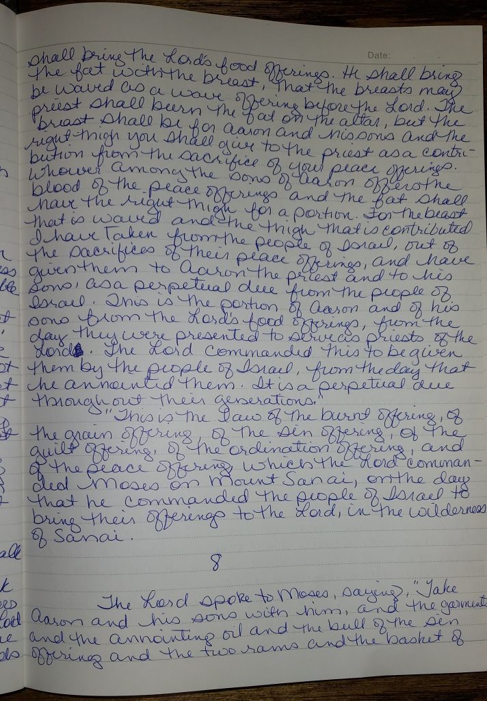 My bible calls this section “Consecration of Aaron and his sons”. I notice that this was done publicly. Not only out in the open, but Moses was commanded to assemble all the congregation to be there. They witnessed it. They seen that these individuals were set apart from the rest of them, to follow through with the Lord’s commands.