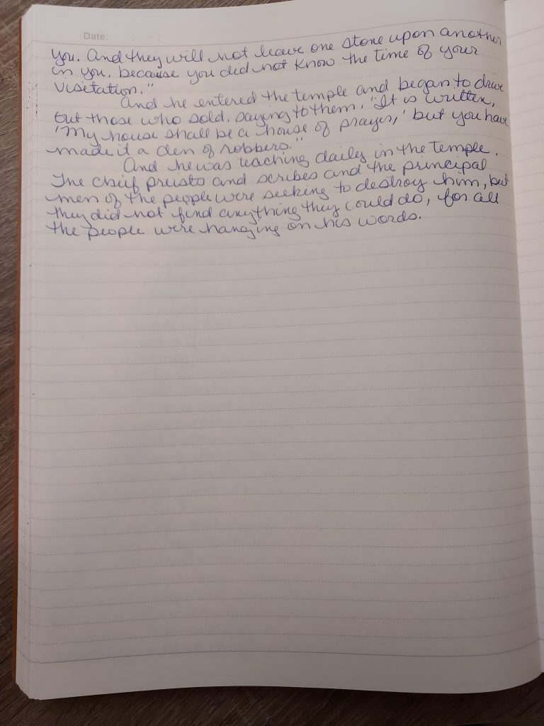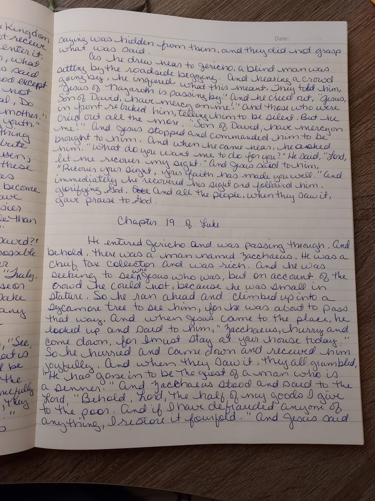 As I looked back over the chapter and to the thoughts I was having, I became a little sad. I thought about the men grumbling about Jesus going to Zacchaeus’ home, the men in men in the parable who did not want the nobleman to rule over them, the Pharisees, the chief priests, and the principal men looking to destroy him… All of these people were blinded to see who Jesus was.