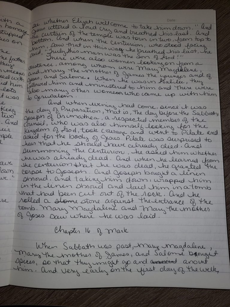 Good morning, chapter 16, a short chapter. A chapter of Good News. After such a sorrowful chapter yesterday, now I know that Jesus Lives. He rose from the dead. He concurred death, for all of us.