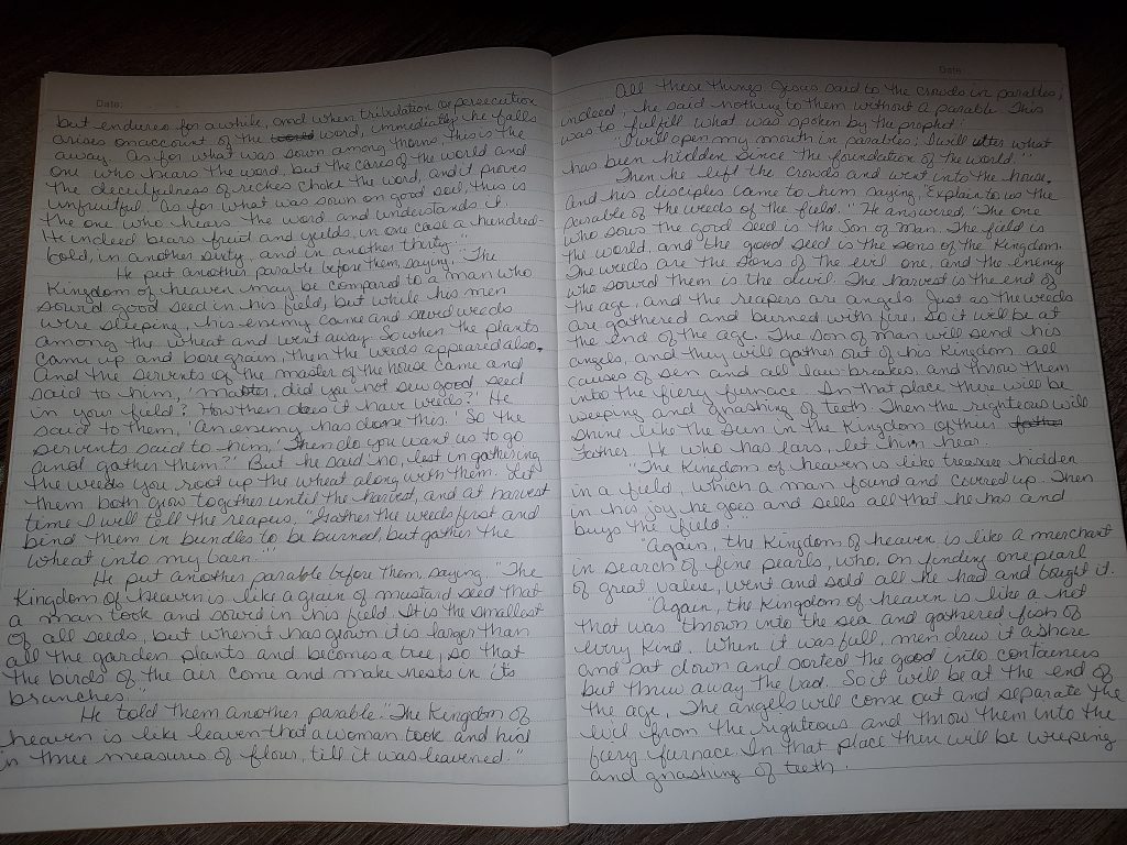 Good morning, finishing up this chapter today. In these verses I am reminded of the value of the kingdom of heaven. It should be worth more than everything I have here on this earth. I should be willing to give all I have in order to obtain it. Will I be one of the good grains harvested by the angels? Or will I be one of the weeds? I pray that my eyes, ears, and heart are open so that I can be a good grain.