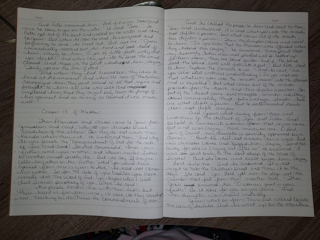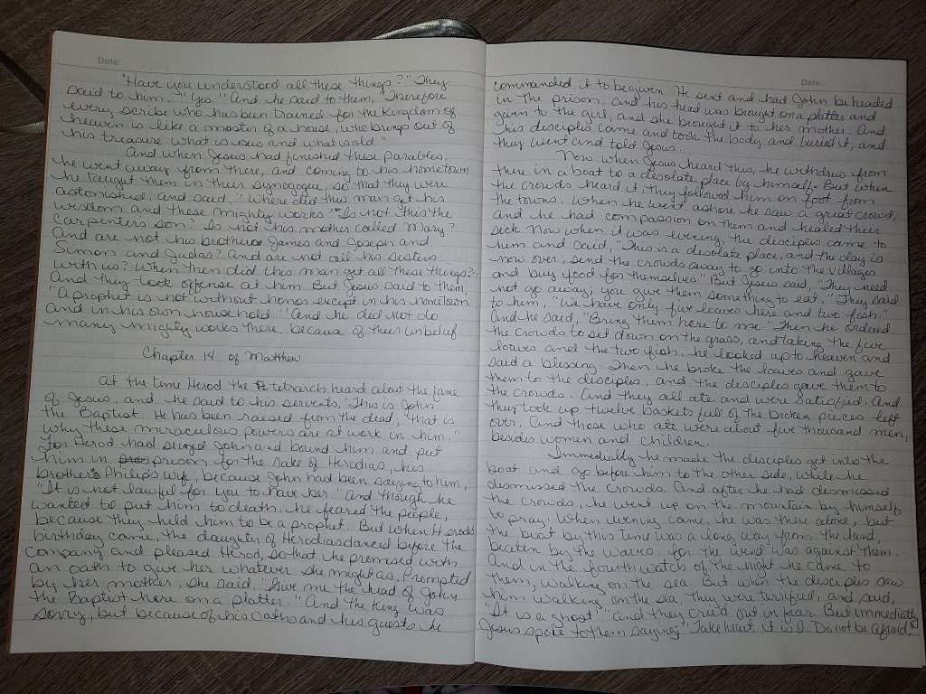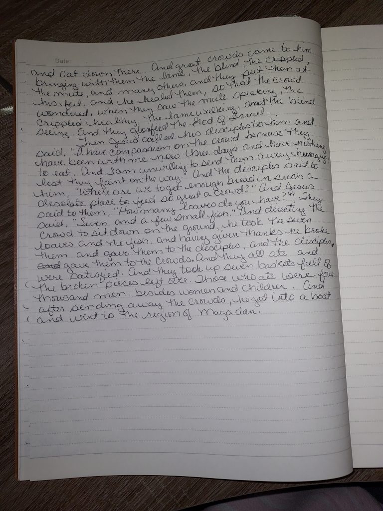 Writing Matthew 14:22-36 and 15 (1/2/20023)
