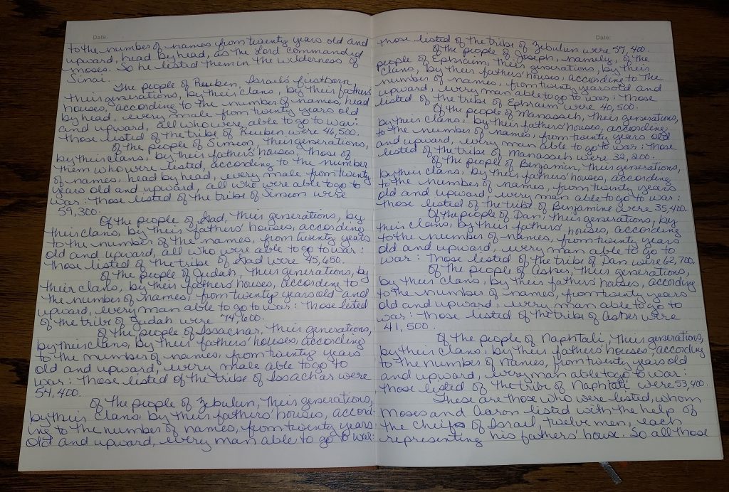 “So all those listed of the people of Israel, by their fathers’ houses, from twenty years old and upward, every man able to go to war in Israel– all those listed were 603,550”