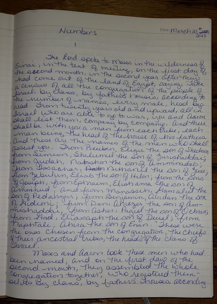 “The Lord spoke to Moses in the wilderness of Sinai, in the tent of meeting, on the first day of the second month, in the second year after they had come out of the land of Egypt, saying, “Take a census of all the congregation of the people of Israel, by clans, by fathers’ houses, according to the number of names, every male, head by head. From twenty years old and upward, all in Israel who are able to go to war, you and Aaron shall list them, company by company.”