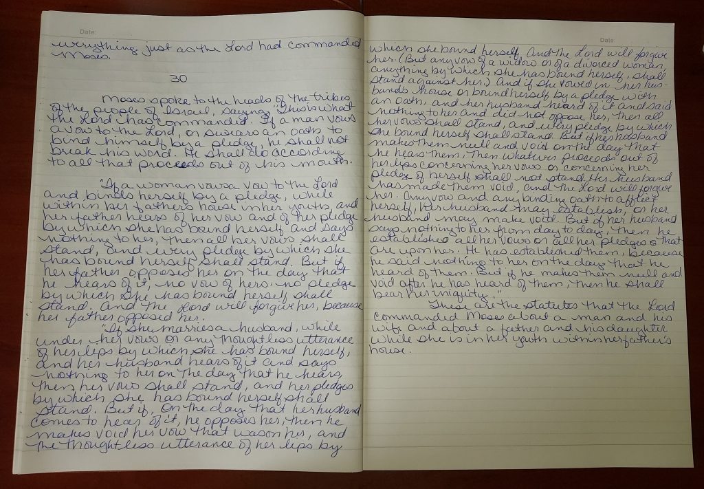 “If a man vows a vow to the Lord, or swears an oath to bind himself by a pledge, he shall not break his word. He shall do according to all that proceeds out of his mouth.”