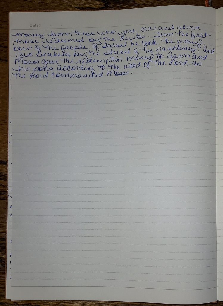 In chapter 3 we get another number to add to the 603,550 from chapter 2. This number of 22,000 are Levite males. I know I am focusing on this amazing number of people who wandered around for years. But I guess that is because the name of this book is NUMBERS!! (me laughing…)