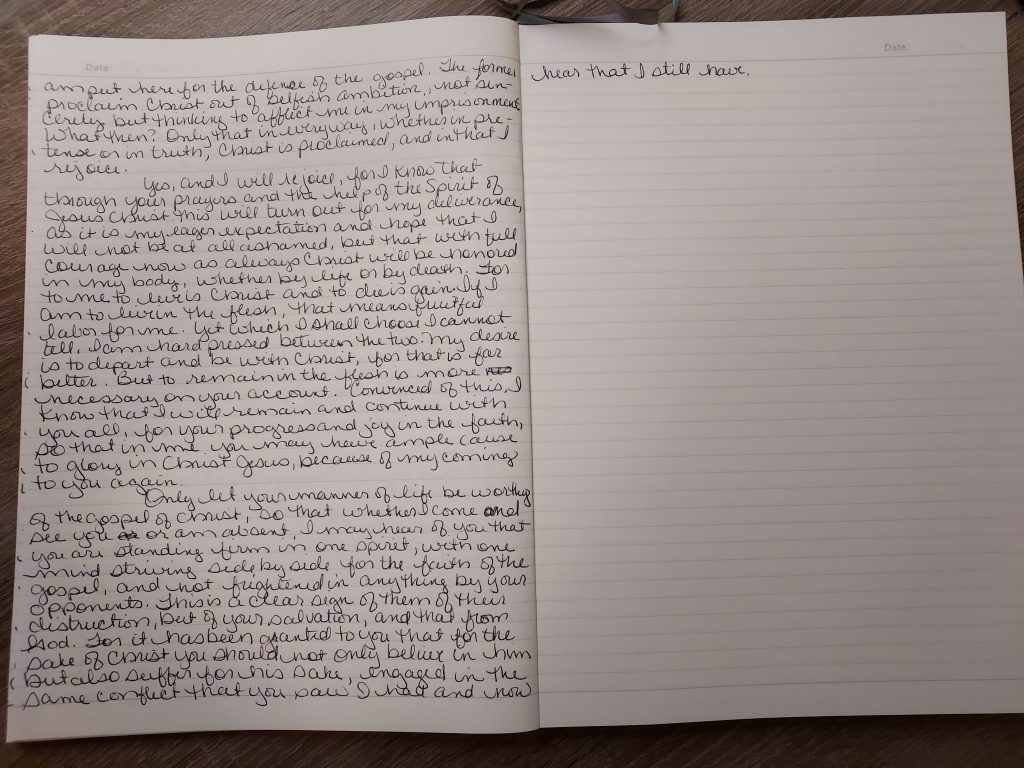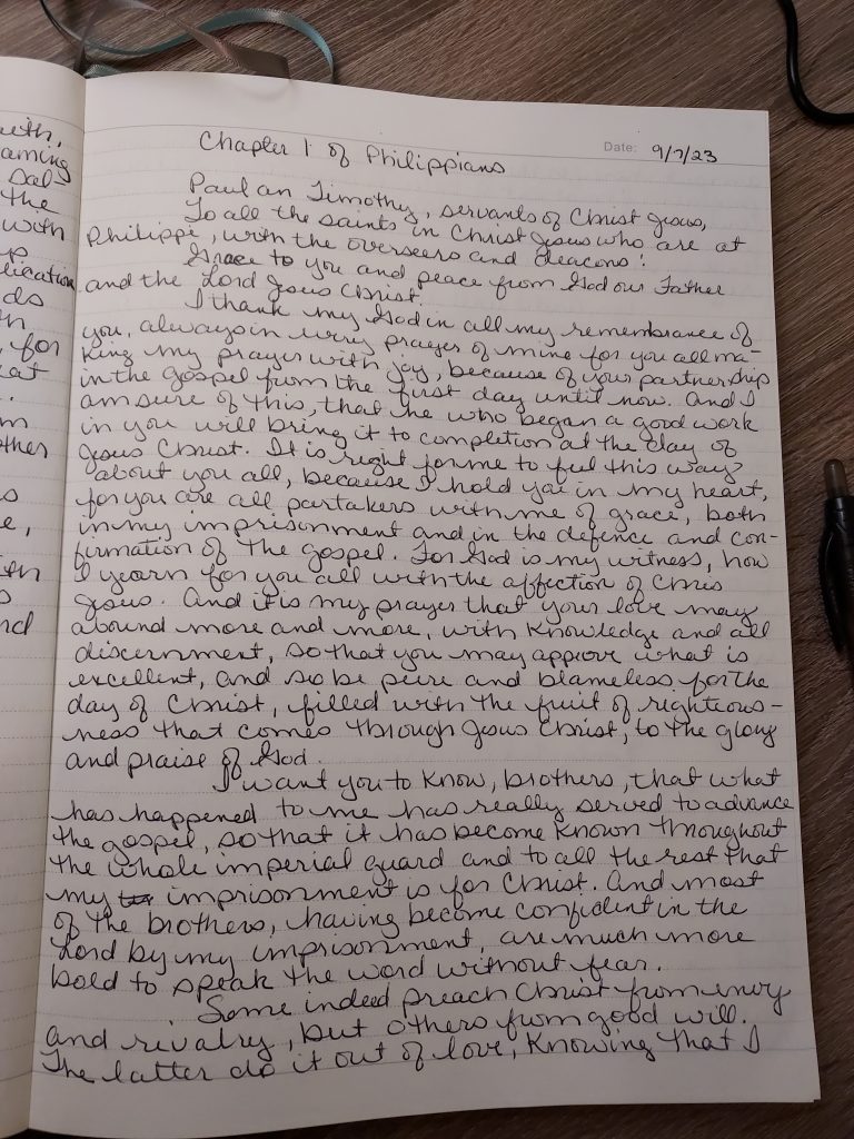 Good morning, I get the pleasure of starting another book today. Can you guess who wrote it? Paul, another book from Paul. As usual I start writing only to read how much Paul cared for these people. He says it is because their partnership in the gospel. It is interesting how I never paid much attention of how much love Paul had for those whom he wrote. This is another reason I am glad I chose to slow down and write the Bible.