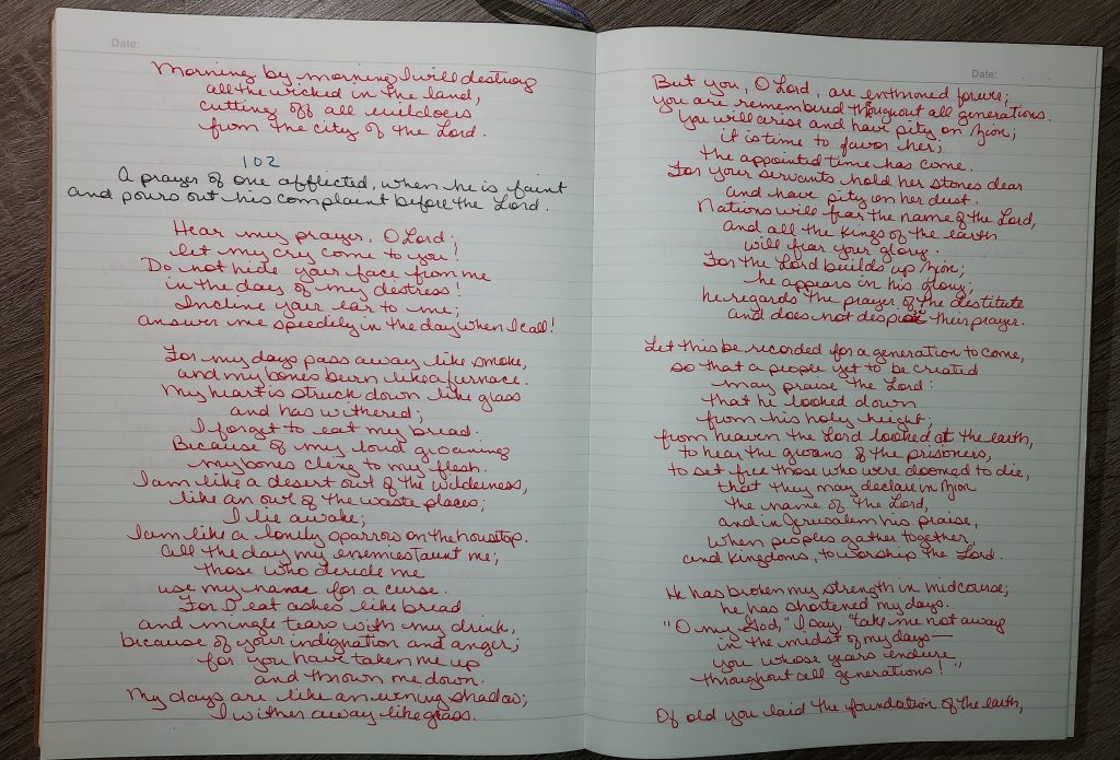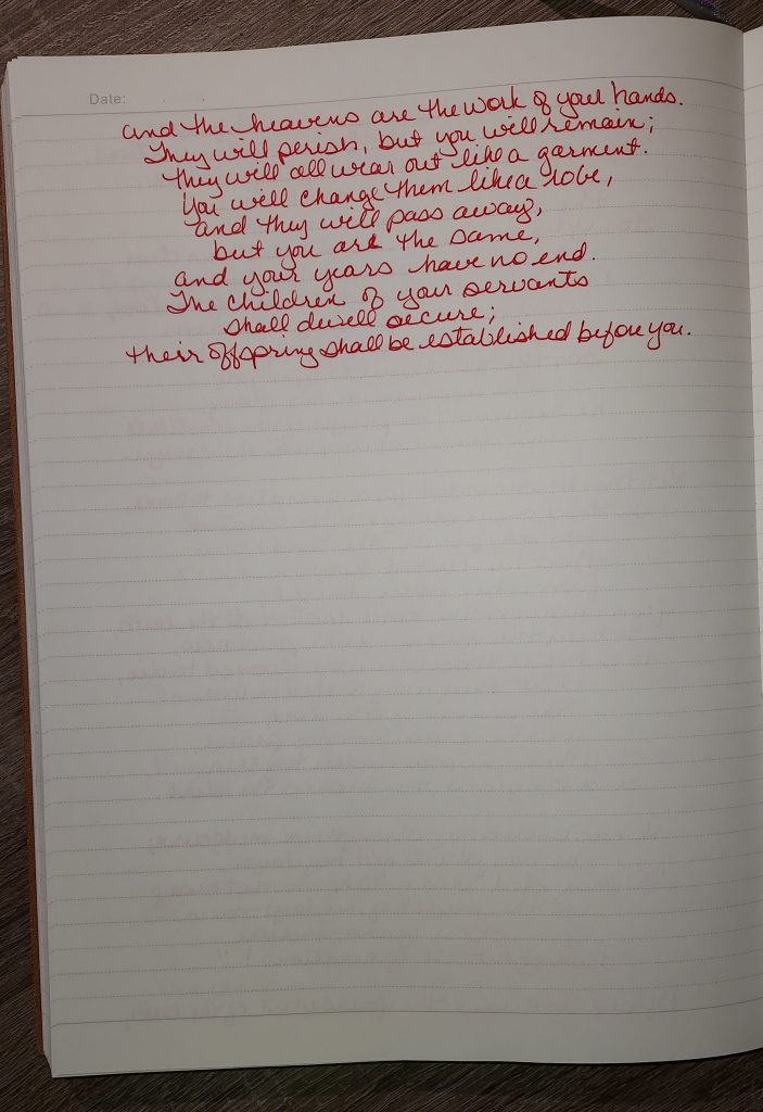I also have a notation in my bible that I wrote: ‘If we want peace in our heart, we need to keep our heart clean and clear of things that don’t benefit us..’ If I could only stay focused then I wouldn’t have to keep starting over. I am so thankful the Lord knows my heart and lets me start over again and again. I know David slipped and then got up again and again. So can I.