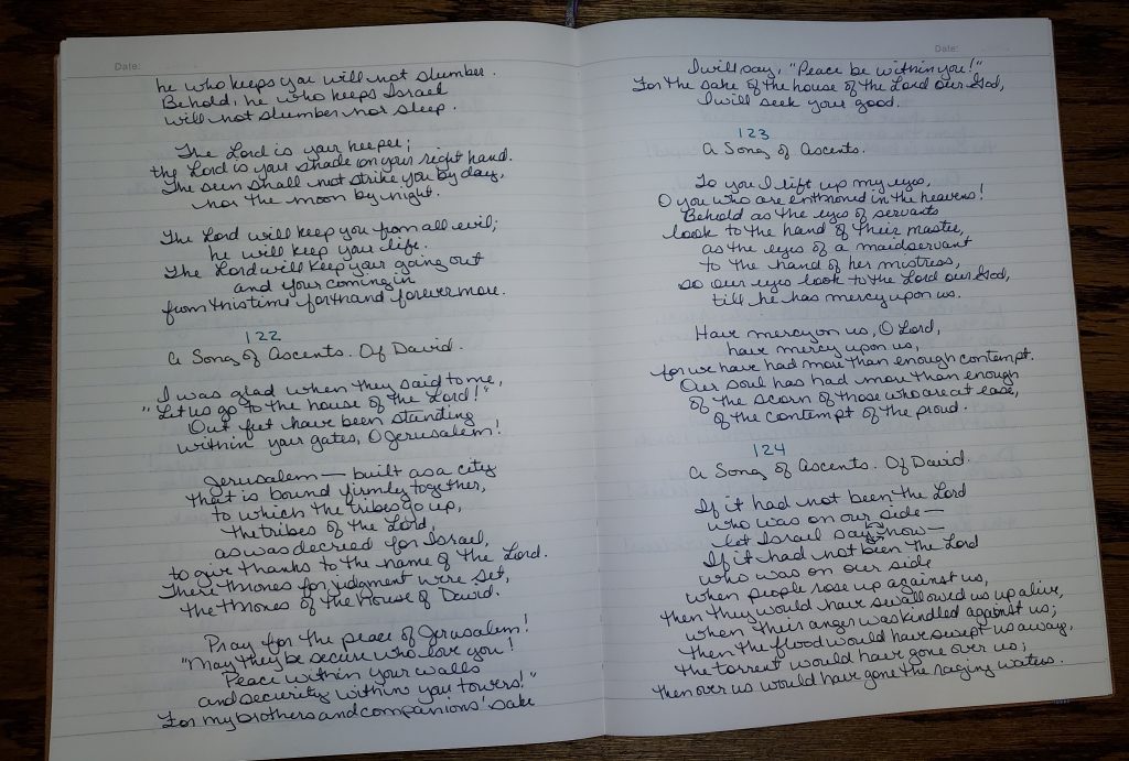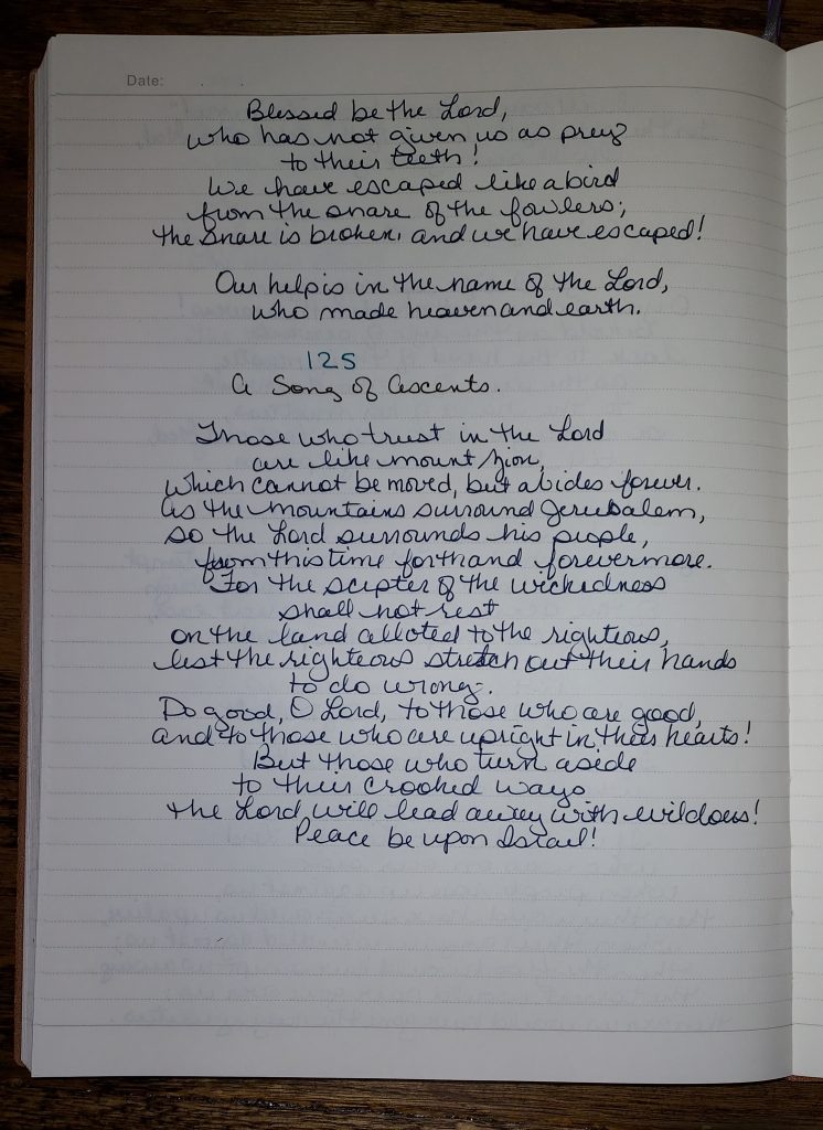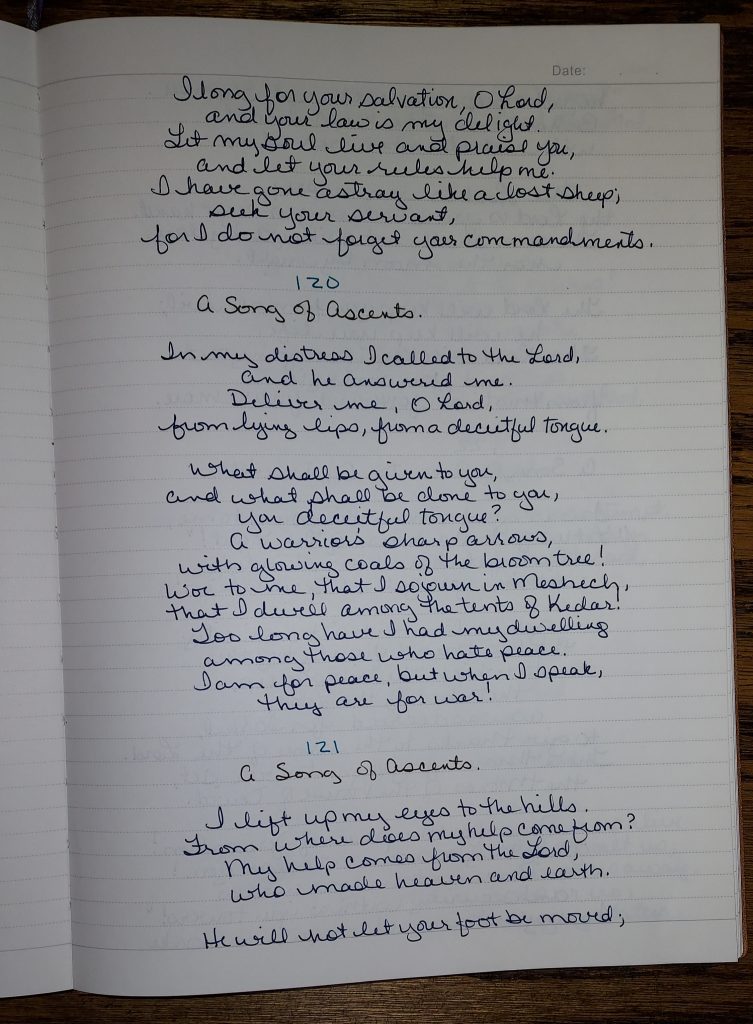 Writing Psalm 120, 121, 122, 123, 124, and 125