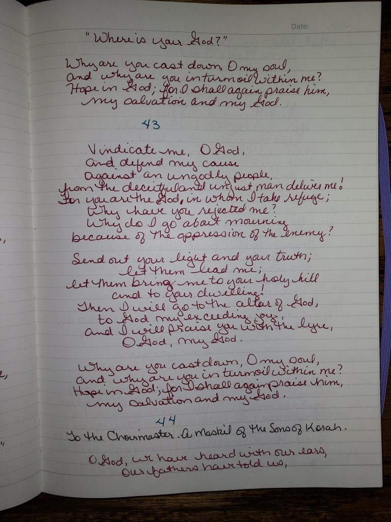 Things were not going as David had hoped. His foes were getting the best of him and his men, and he didn’t know why. There are times in my life that things are not going well. But like David I can continue to cry out to the Lord, I may not feel Him, but He is still there. Just as He was for David. Let me not forget to continue to reach for Him in my time of trials in this world.