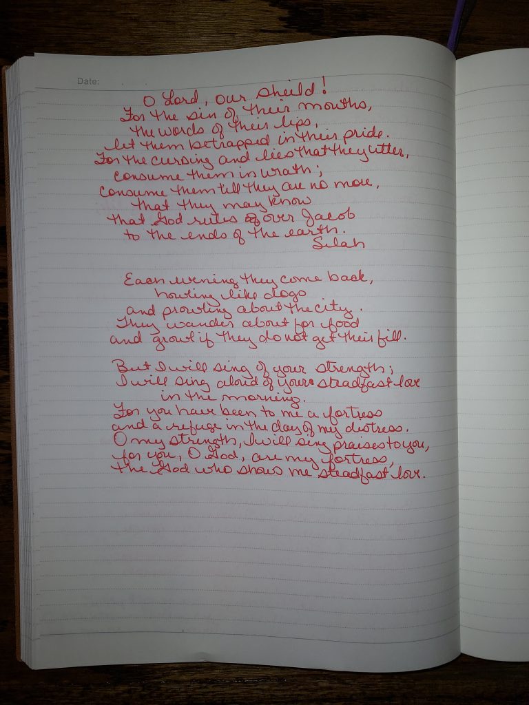 O my Strength, I will sing praises to you, for you, O God, are my fortress, the God who shows me steadfast love.”