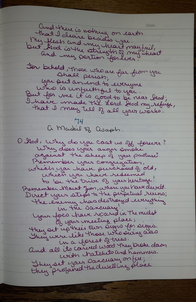 There are times that I am lost in a world of pain, suffering, anguish. We all go through these times. Times that may seem like God is silent. Times that I want to hear Him, but I don’t. It is so important that I know He is still there, He is still working in my life. I just may not see it at the time. It is so important that I keep turning towards Him and not away from him. The writer of this Psalm was going through a horrible time with a lot of physical suffering, but he still turned to God and was dependent on God. God is still there, I just need to remember that.