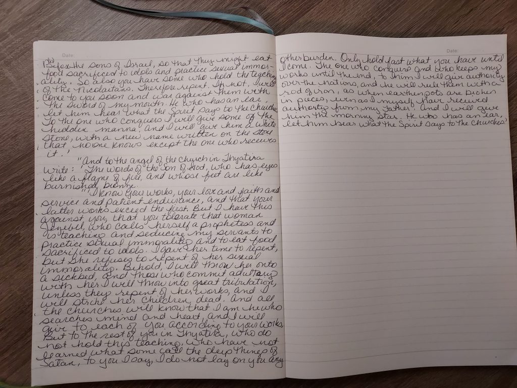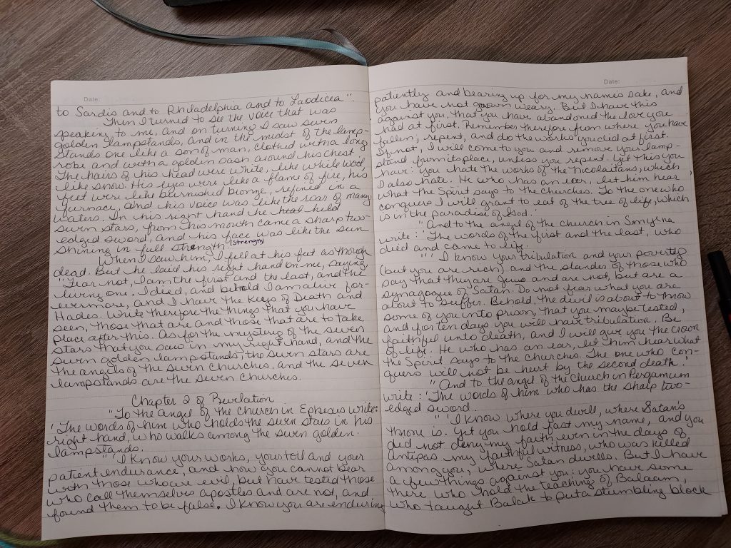 In chapter 2, the Lord begins to speak to the seven churches. One thing that is repeated to each church, is “He who has an ear let him hear what the Spirit says to the churches.” This is important to me to open my ears to what the Scriptures say. If I open my ears then I will be able to hear and know what I need in order to receive the gift of everlasting life. This is what the Lord is offering to us all.