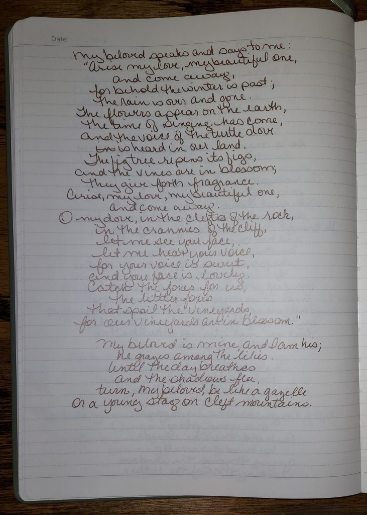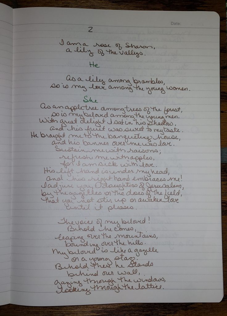 Song of Solomon makes me feel blessed to have a good husband. A husband that after 30 years, still makes me feel special and loved. I can see Solomon taking this maiden by the hand and walking her to a better place. That is what I feel my husband did for me, he took me to a better place.